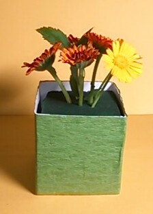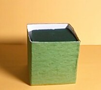 オアシスが水を吸って底に沈んだら、オアシスを牛乳パックに入れる。