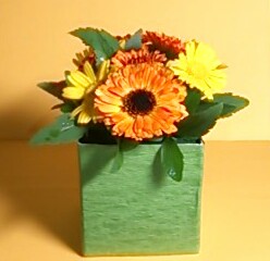 全体の構成をイメージしながらオアシスにお花を挿していく。
